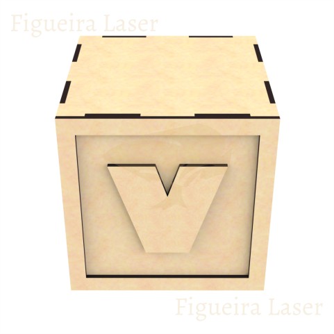 Cubo MDF 3 mm 12 cm Aplique Letra V