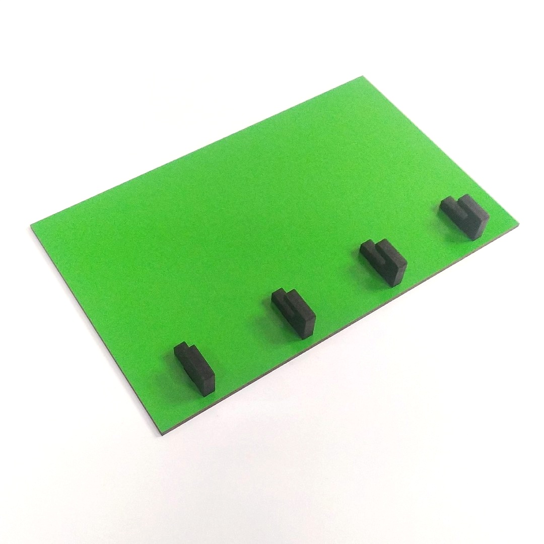O MDF revestido possui cor e película em ambos os lados, as bordas ficam pretas da queima do corte a laser.