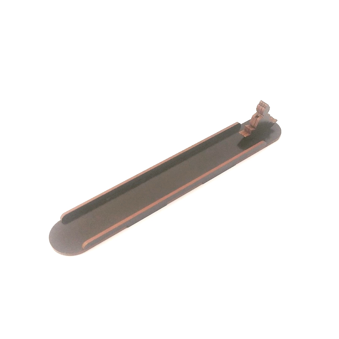 O MDF revestido possui cor e película em ambos os lados, as bordas ficam pretas da queima do corte a laser.