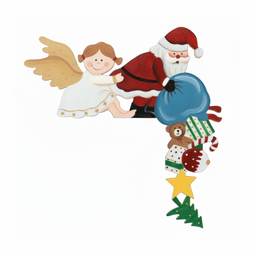 Recomendada para pintura, tema Anjinho Segurando Papai Noel Virando Saco de Presentes